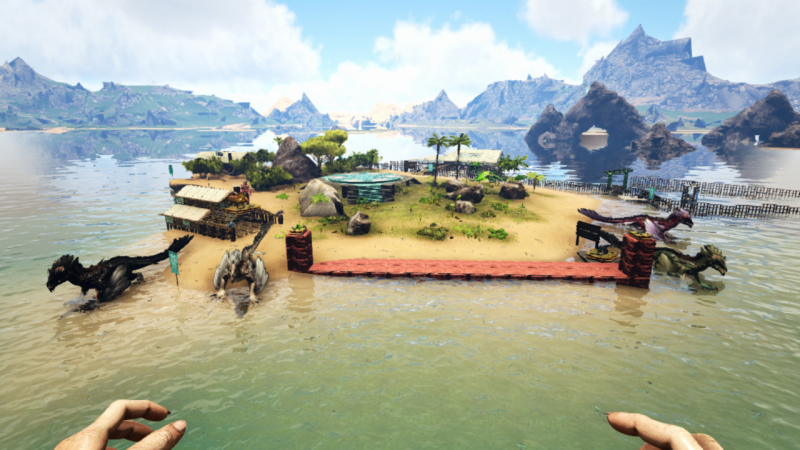 Course d'obstacles en Manta et zone d'arrivée de "La Gorge du Monde", l'île accueille également la maison admin de Spartan, de la Tribu de l'Intemporel.