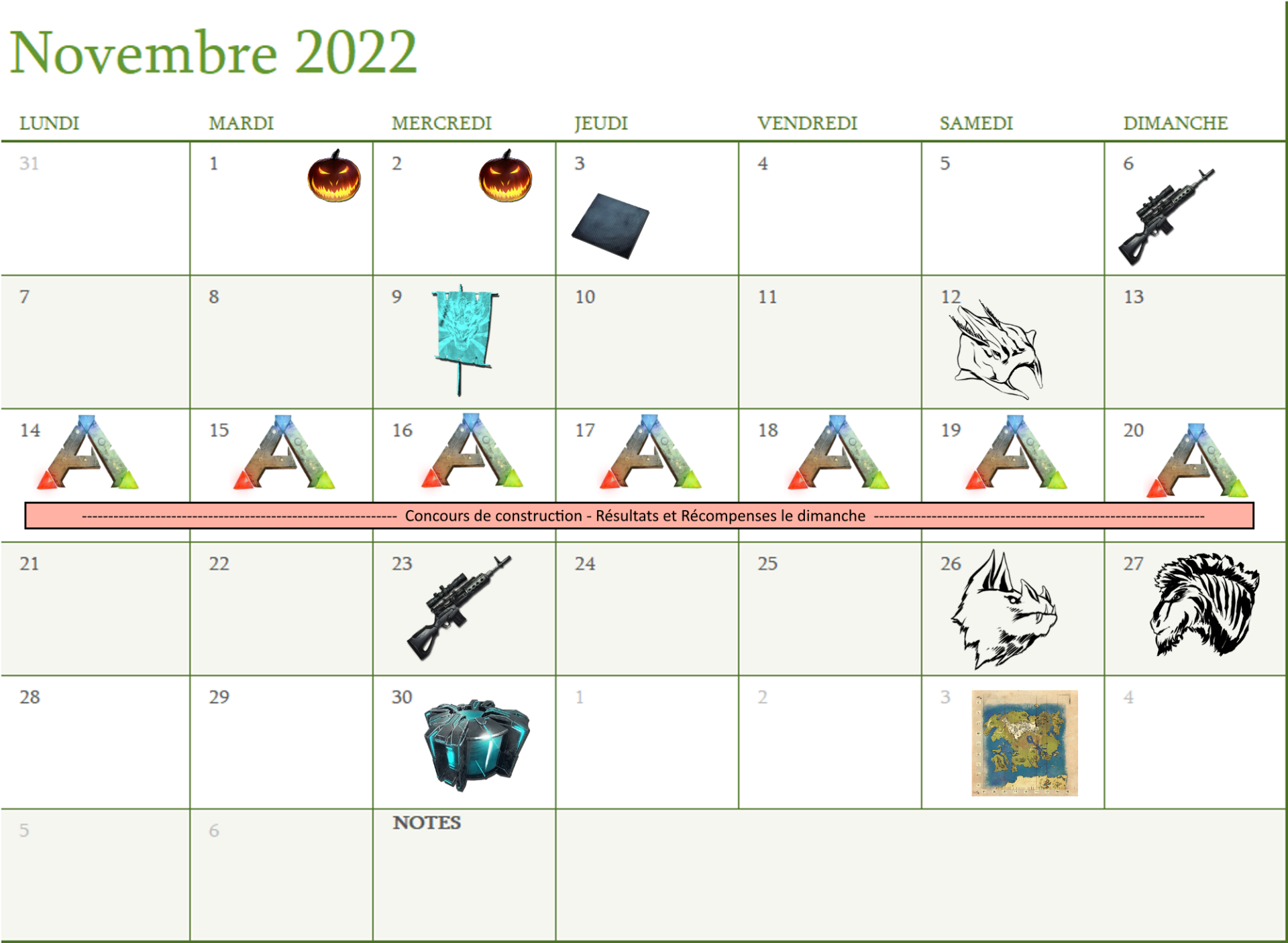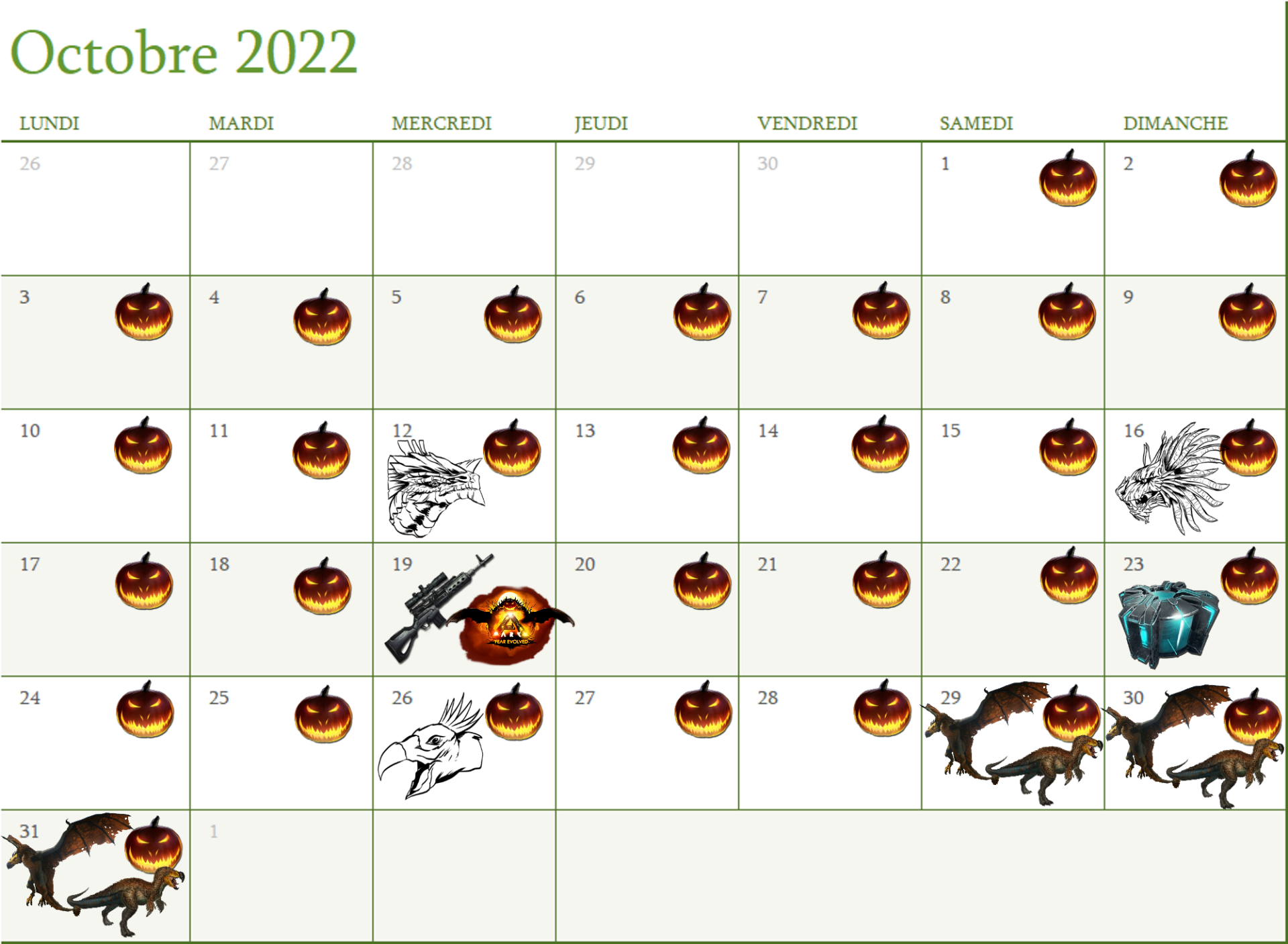 Ce calendrier est à titre informatif, des Event seront ajoutés ou retirer selon les demandes des joueurs.