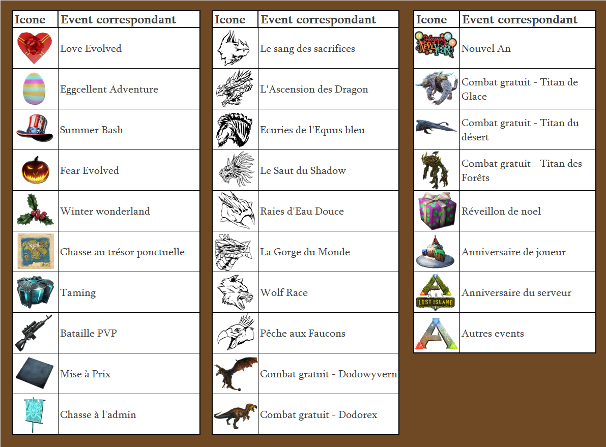 Les Event attirant peu les joueurs se verront classé dans la catégorie Event- Archives, cette rubrique restera vide jusqu'à ce que des Events soient mis de cotés, ainsi ils ne seront jamais perdus et pourront êtres remis en jeu.